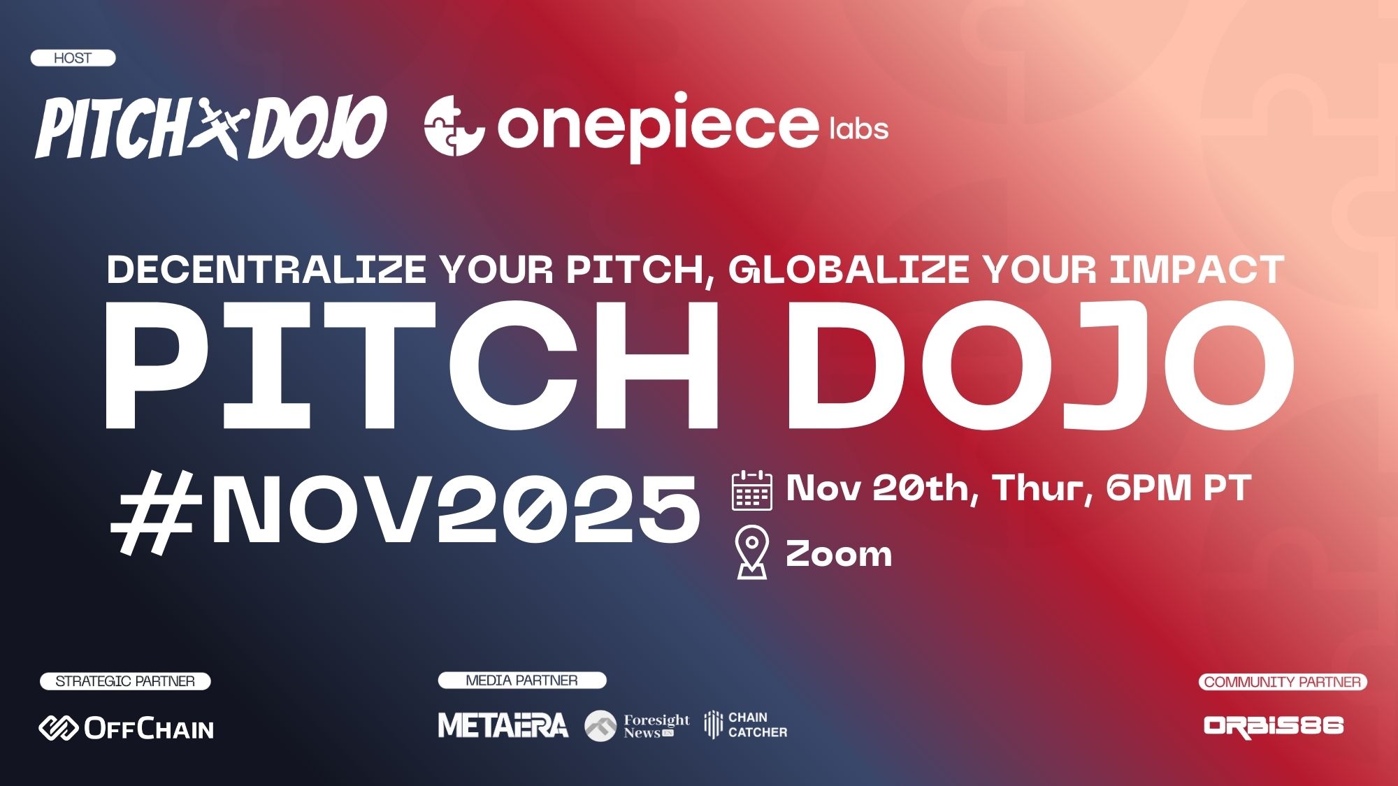 Pitch Dojo #APR2024 owes its success to the invaluable support of esteemed partners within the Web3 ecosystem. Special thanks to OffChain, Orbis86, H3 Entertainment, Angel Launch, and our esteemed media partners Foresight News, Cointime, and TechFlow for their unwavering commitment to nurturing innovation and driving positive change.